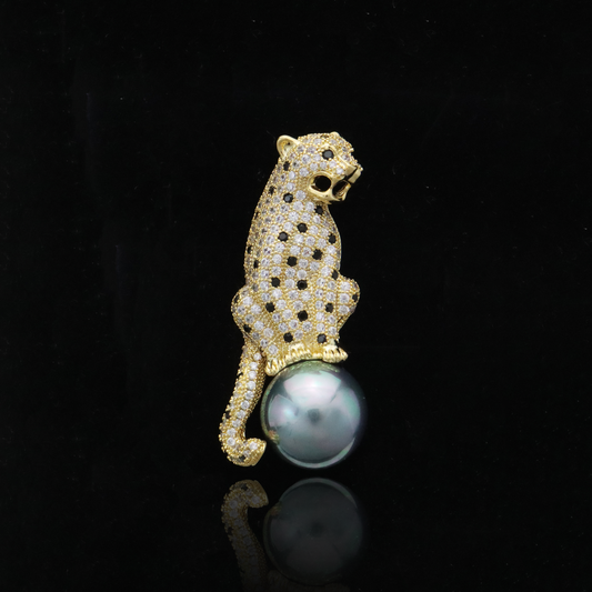 Elegant Leopard Pearl Brooch